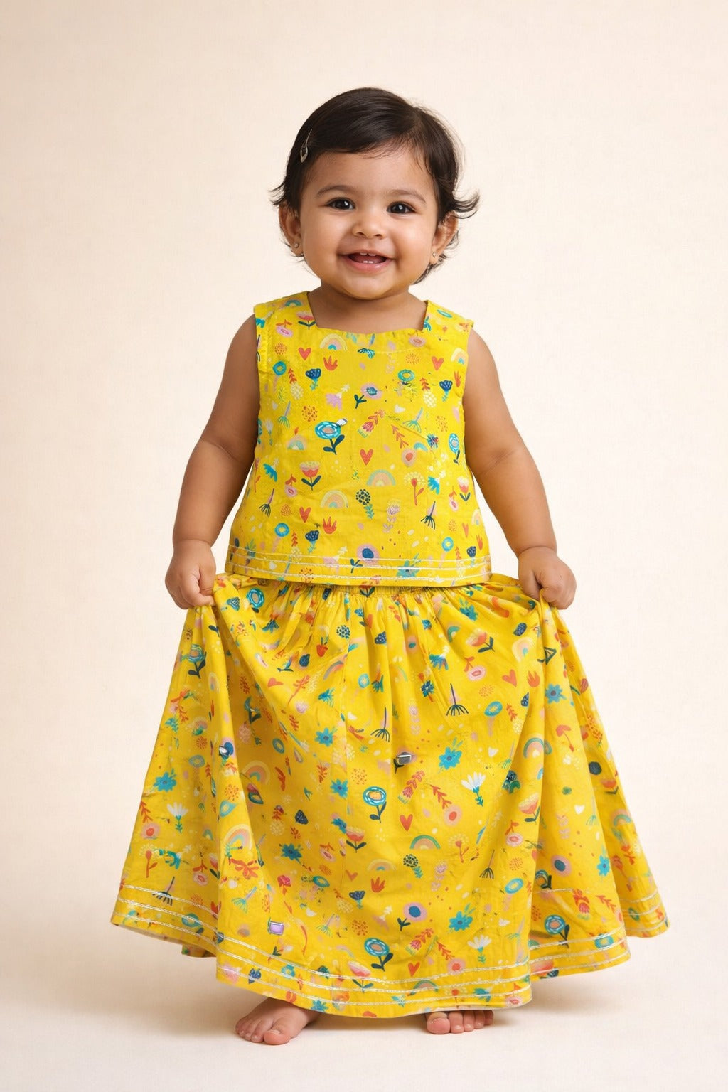 Unlike newborns and infants who are always laying or sitting in one place, the energy levels of toddlers are unmatchable. They are always running here and there, playing around and growing fast. Hence it's important to get them clothes that do not restrict their movement, match their movements and provide the utmost comfort. Your hunt for a kid's clothing store for toddlers ends at Mama & Peaches. We have a great collection of angrakha and kurta sets, dresses and co-ord sets for toddlers.
