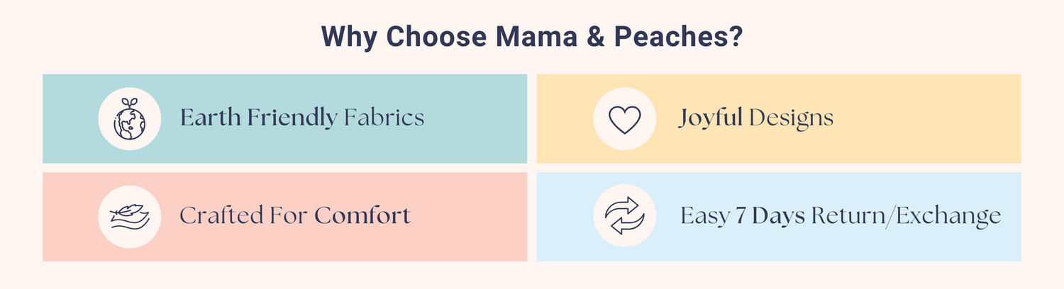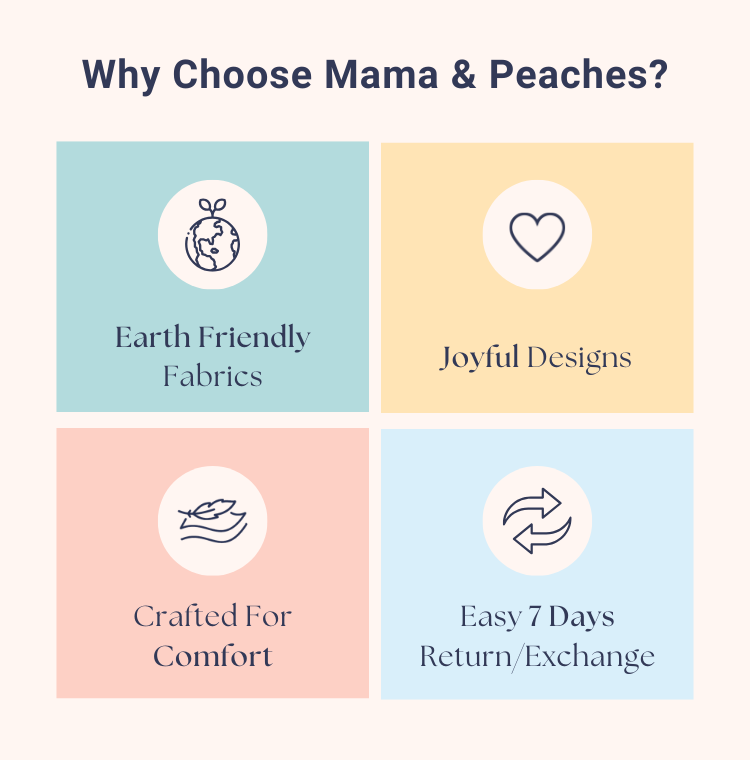 Being a family-owned brand run by moms, we at Mama & Peaches understand your excitement and curiosity about being a new parent. With our curated collection of kid's clothing such as newborn onesies and others and maternity wear for mothers, we are here to support you in this beautiful phase of motherhood. Along with our adorable collection of baby products, we also support you in making the best buying decision for your kids and yourself.