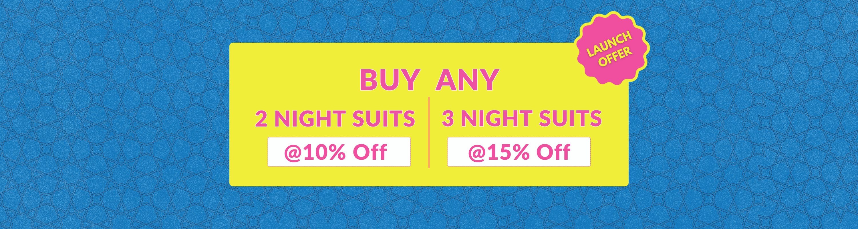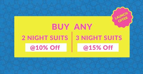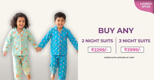 Our kids' nightwear range is safe and the best quality fabric is made especially for your precious little ones. The breathable fabrics lock away the moisture from the body, and hence they prevent itchiness and any other irritation. To have a trendy look, we have some night suits for kids that have cute prints all over them. They don't have any chemicals on them, which makes them harmless and gentle on their skin. Our baby night suits come in various sizes, colours, prints and lengths so that you can choose the perfect loungewear considering the season and other requirements.