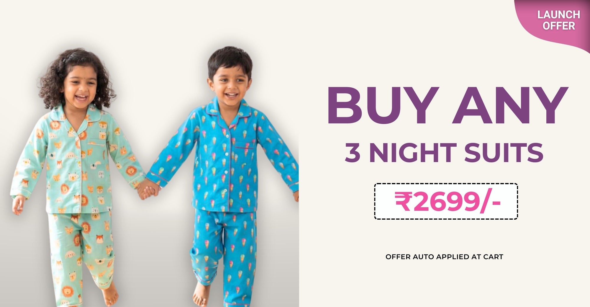 A: The most important factor is the fabric of the kids’ nightwear that or baby night suit you buy. The material or fabric determines how soft, breathable, lightweight, and comfortable it feels on your little one’s delicate skin.