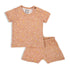 A two piece set with a round neck and short sleeves T-shirt and shorts with a light elastic and a drawstring! The perfect summer uniform! Great for playtime and sleeptime.