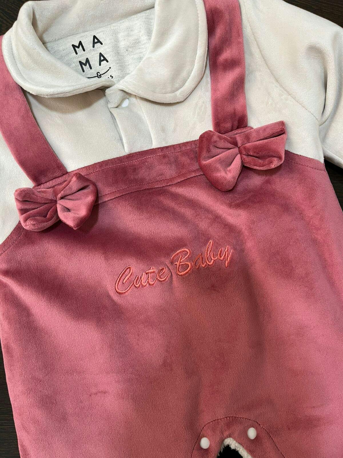 Cute Baby Velvet Winter Romper with Sherpa