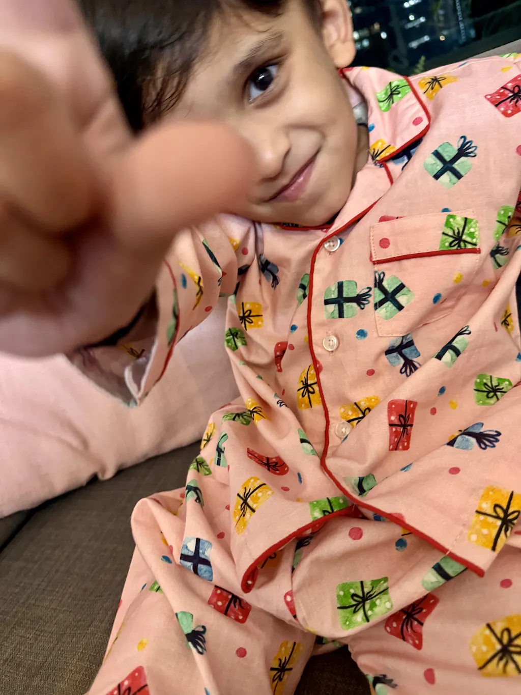 Please refer to our size chart on the product page. Our nightsuits have a relaxed, sleep-friendly fit. Sizes run slightly large - please choose your child’s usual size. No need to size up.